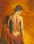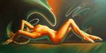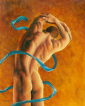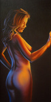 2006El cuerpo, ultieme schoonheid. In het zachte licht zijn subtiele contouren van het lichaam zichtbaar die de vorm m.b.v. complementaircontrast 3-dimensionaal maken. Vrijehand airbrushwerk.